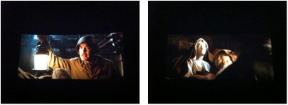 Clooney also gives himself a romantic interest. The most important female character to Clooney is clearly Michelangelo’s The Madonna of Bruges, a marble sculpture of Mary with the infant Jesus. The Madonna is a western icon of womanhood. Upon discovery of the famous statue in the Nazi storehouse, Clooney’s character respectfully removes his hat, breathlessly beholding her image. The ultimate catch, the Madonna is rescued by Clooney and transported to safety. The statue is laid horizontally on the back of an army truck, partially exposed to the open air so that her frozen white face appears against the blurred countryside on the journey of her return. In this telling shot, the Madonna is covered up to her neck by a blanket, crudely bedded on a pile of straw.