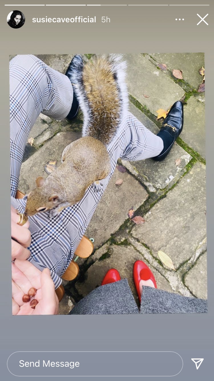 Everyone should have pets, but it’s even better when these pets are simply wild critters that wandered into your home and stayed! Fuck designer dogs like Biden’s newest puppy Commander! (Whatever happened to the best bad dog, Major?! I want proof of life!) It’s best to find your pets as they invade your home and steal all your hazelnuts! All of which to say the best pet of the year has to go to the Caves’ squirrels Chaos and to a lesser extent, Order, another British squirrel friend that seems to have more decency than Chaos. I first noticed the varmints becoming a part of the Cave household as The Vampire’s Wife founder and Nick Cave’s wife Susie began posting Instagram stories of a squirrel bouncing all over their couch while Nick was on his Carnage tour with Warren Ellis. When he came home, did he boot out the fluffy-tailed rodent? Nope! As Nick’s newsletter The Red Hand Files attests with exasperation: “He has essentially moved in. He wasn’t our idea. We have no control over him.” What is Chaos like? Well, “Chaos doesn’t give a fuck about anything that we give a fuck about—like sleeping or working or watching TV. He has no sense of propriety no boundaries, no basic civility.” “We just want things to go back to the way things were,” writes Nick pleading for normalcy. Well, we certainly don’t! Long live, Chaos!